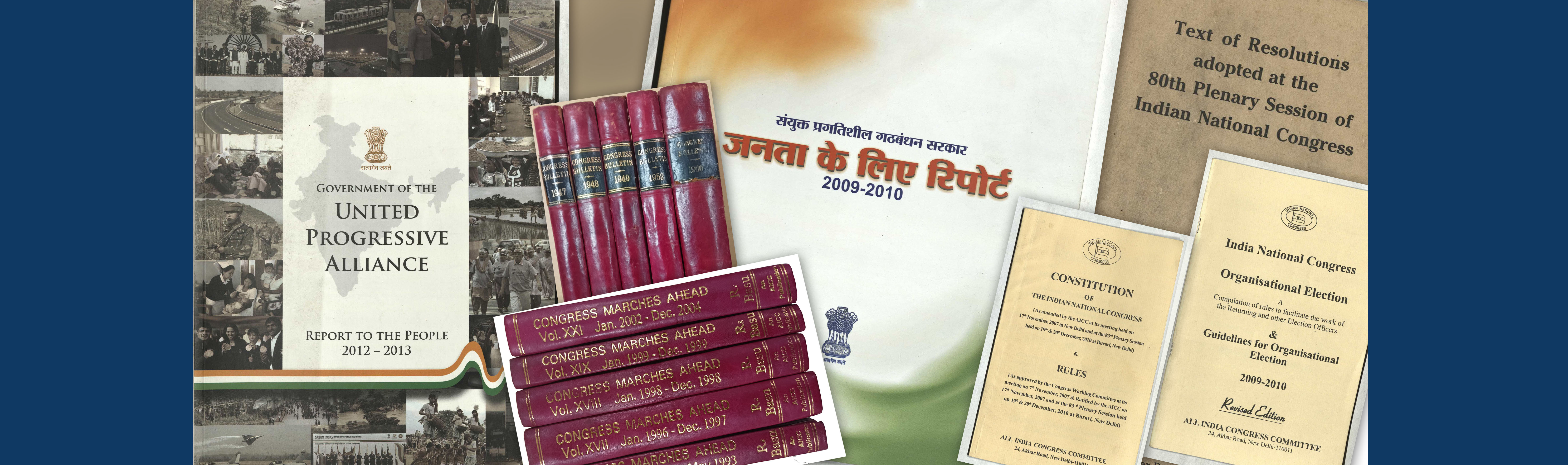 About the Collection: The collection consists of Congress Bulletins (1947-1985), reports of the General Secretary (1983-2010), AICC publications ‘Congress Marches Ahead’ (1970-2017), Election Manifesto of the INC (1980-2009), books and other publications on the Indian National Congress. The papers provide valuable source material for study and research of the Congress Party post-independence. (Catalogue available)