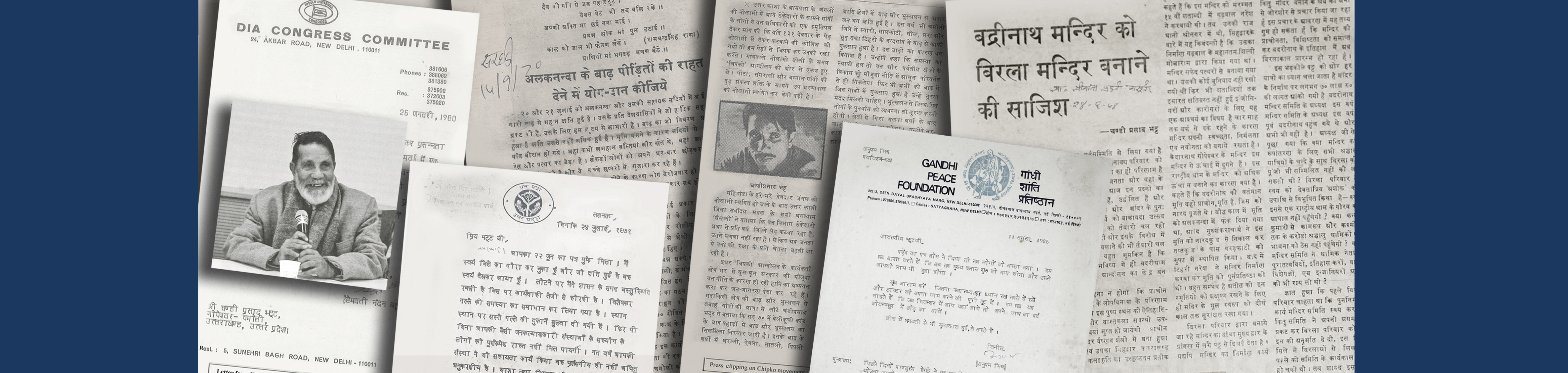 About the Collection: The papers of Chandi Prasad Bhatt are a mine of information for researchers interested in the study of various aspects of social ecology, the history of people's movement as well as issues relating to the preservation of the ecosystem of the Himalayas. The papers include correspondence, reports, articles, press clippings relating to the Chipko movement in Uttarakhand, activities of Dasholi Gram Swarajya Mandal, Lok Soochna and Sahayata Kendra, forest conservation movement, Uttarakhand Andolan, Birla Mandir controversy, and environmental impact of hydro-electric and big dam projects in Himalayan regions. (Catalogue available)