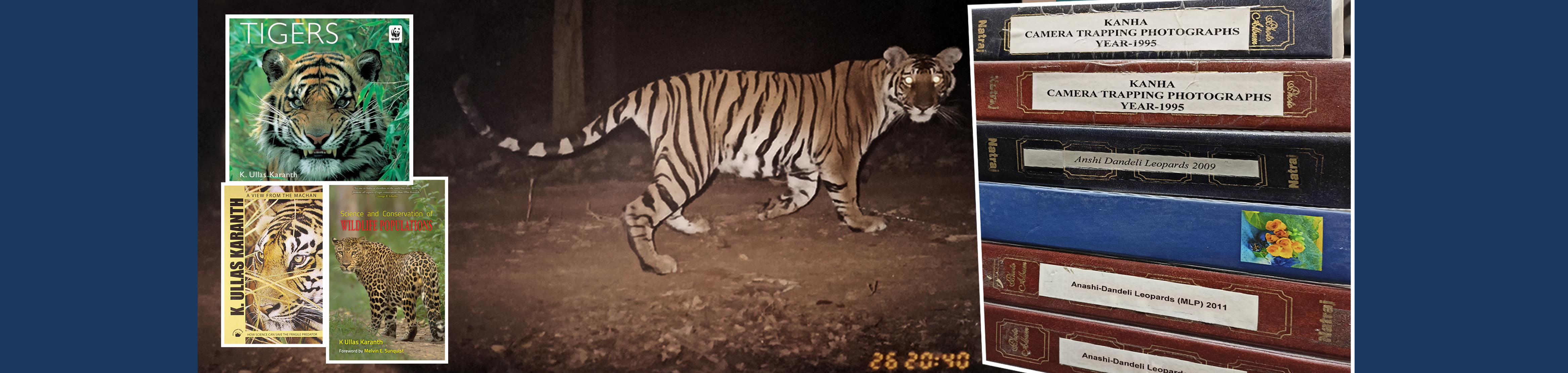 Dr. Karanth has conducted pioneering long-time research on the ecology of tigers and other large mammals. He has published over 150 scientific articles in various journals and authored The Way of the Tiger (2001), A view from the Machan (2006) and co-edited Monitoring Tigers and their Prey (2002), Camera Traps in Animal Ecology (2010), and Methods for Monitoring Tiger and Prey Populations (2017).