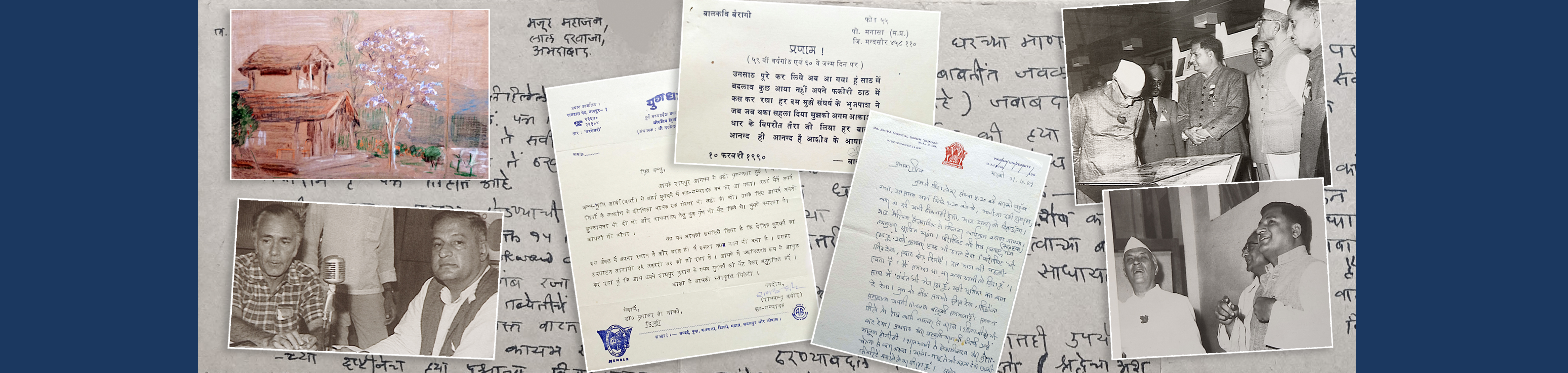 About the Collection: Prabhakar Machwe papers throw light on his dedication to writing in Hindi, Marathi and English and related educational, literary and cultural activities for over five decades. These include correspondence with his contemporaries such as Sarvepalli Radhakrishnan, Kishorlal G. Mashruwala, Haribhau Upadhyaya, B.V. Warerkar, Yashpal and Shivmangal Singh ‘Suman’. There are papers related to his tenure as Assistant Secretary and Secretary, Sahitya Akademi, and Director, Bharatiya Bhasha Parishad, Calcutta. The published and unpublished manuscripts of poems and short stories in the collection are seminal source material for the study of contemporary literature. The collection also contains Marathi and English translations; editorials in Chautha Sansar and articles on Hindi and Marathi literature; speeches, seminar/conference papers; press clippings, photographs and printed material. Some of his rare books in English, Hindi and Marathi are also a part of the donation. (Catalogue available)