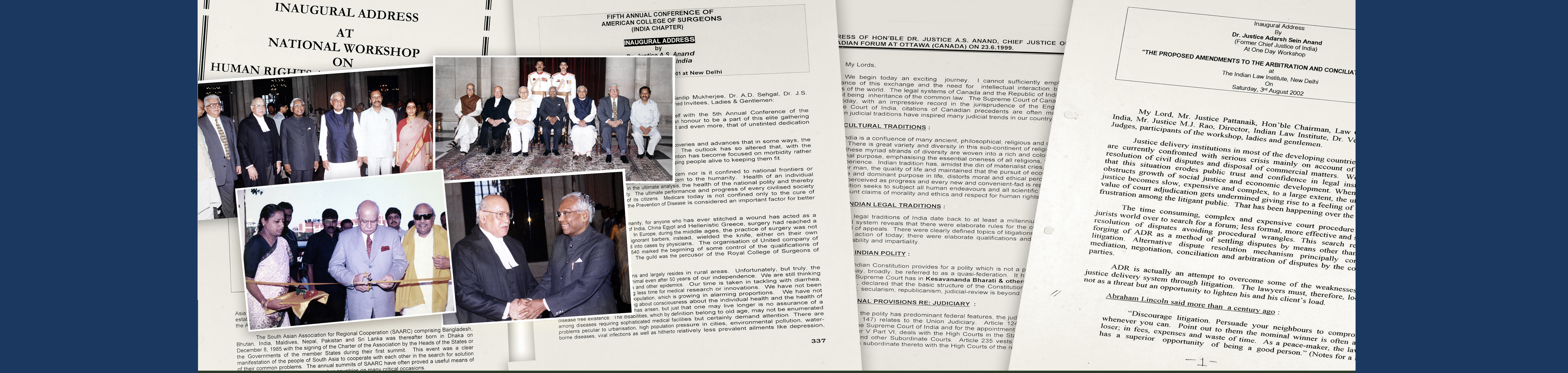 About the Collection: The papers were donated by Justice A.S. Anand himself in July 2017. The collection provides insights into various aspects of the Indian legal system and constitutional development. The papers mainly comprise his speeches delivered as Chief Justice of India; Judge, Supreme Court of India; Chief Justice, High Court of Jammu & Kashmir, and Tamil Nadu; and as Chairman of National Human Rights Commission. There are also six photo albums containing photographs of his activities between 1997-2007. (Catalogue available)